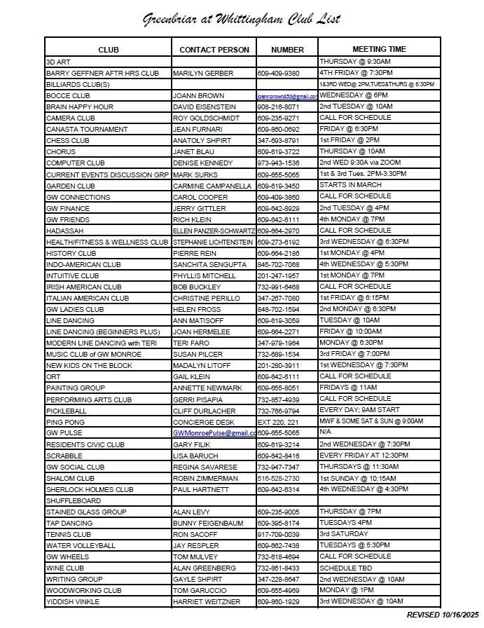 Any questions, please contact The Recreation Office at 609-409-9292 x227.